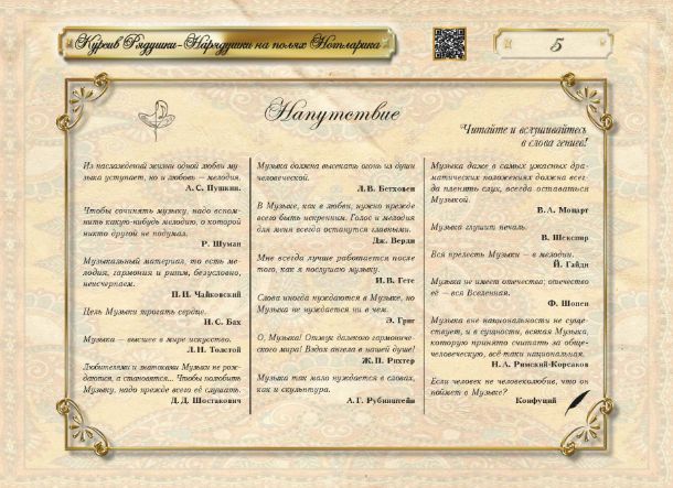 Воспитывает привычку каждодневных соприкосновений с миром Музыки!